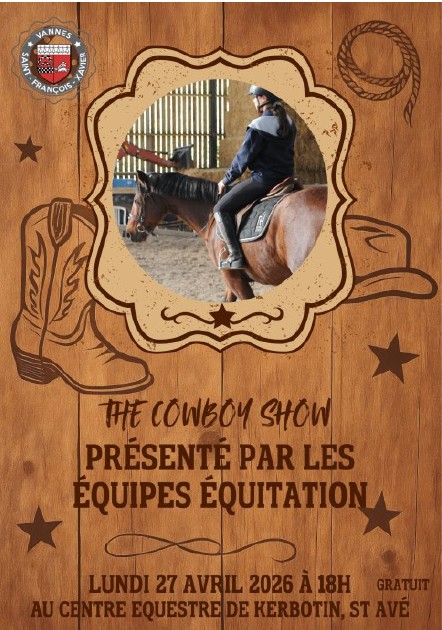 lundi 27 avril à 18h00 : spectacle des équipes Équitations "The cowboy show" au centre équestre de Kerbotin à St Avé