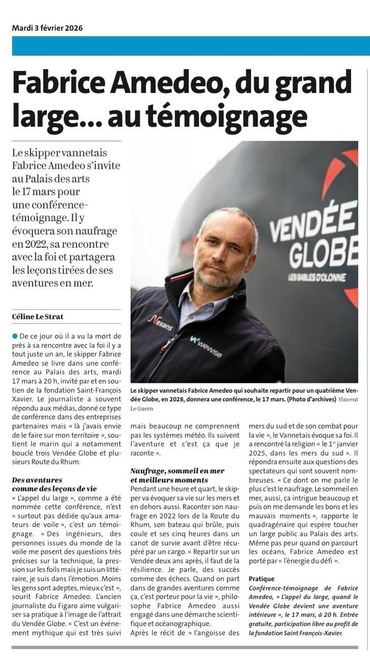 St François-Xavier a le plaisir de vous inviter à la conférence de Fabrice AMADEO, le célèbre navigateur.