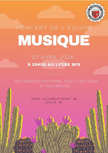 lundi 27 avril à 20h30 : concert de l'équipe Musique